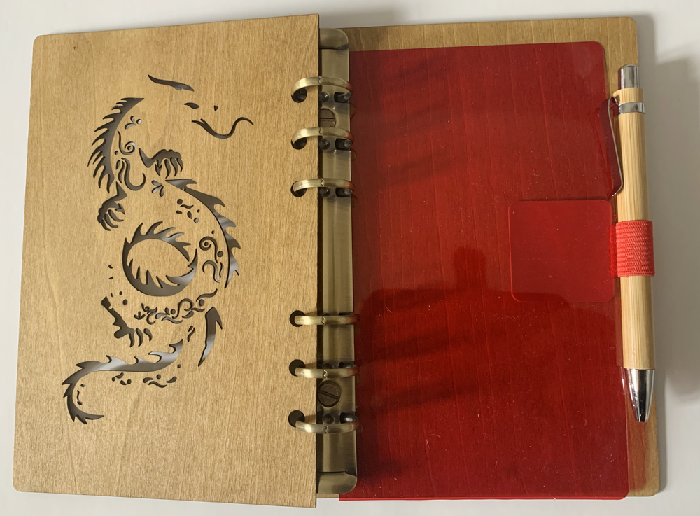 Inside Cover has Red Coloured Acetate and comes with a Bamboo pen