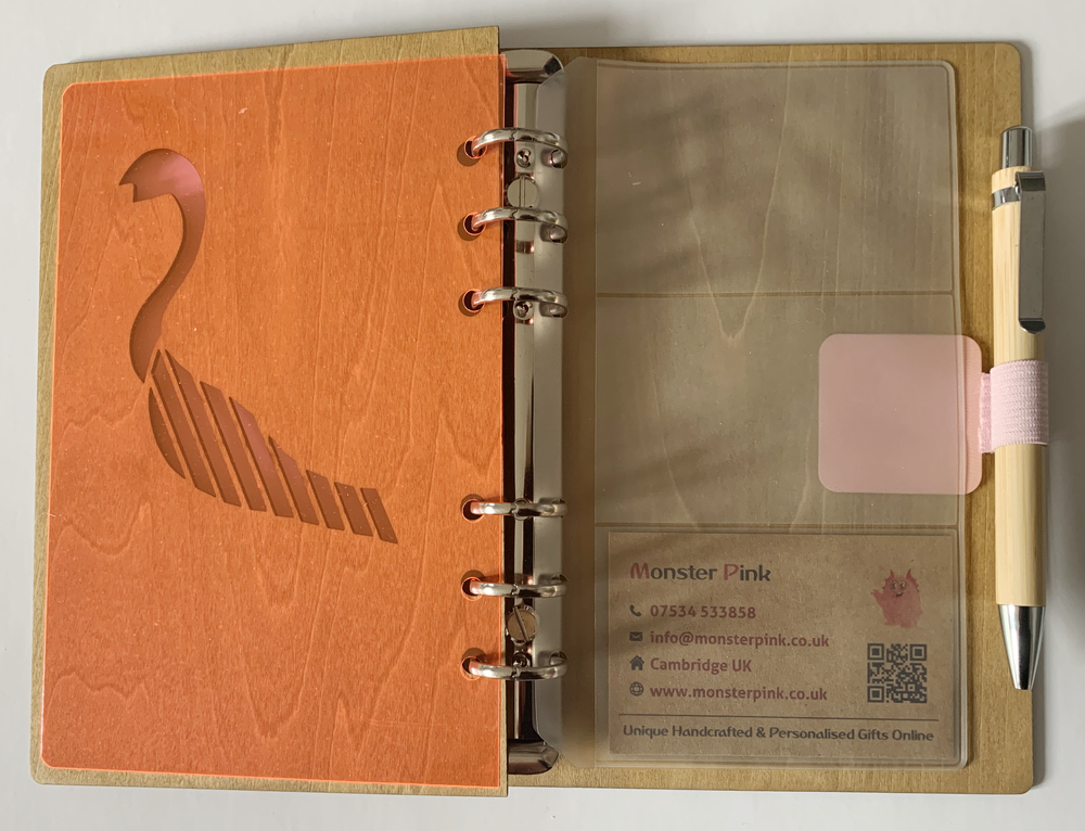 Inside Cover is Pink Acetate and comes with a Bamboo pen