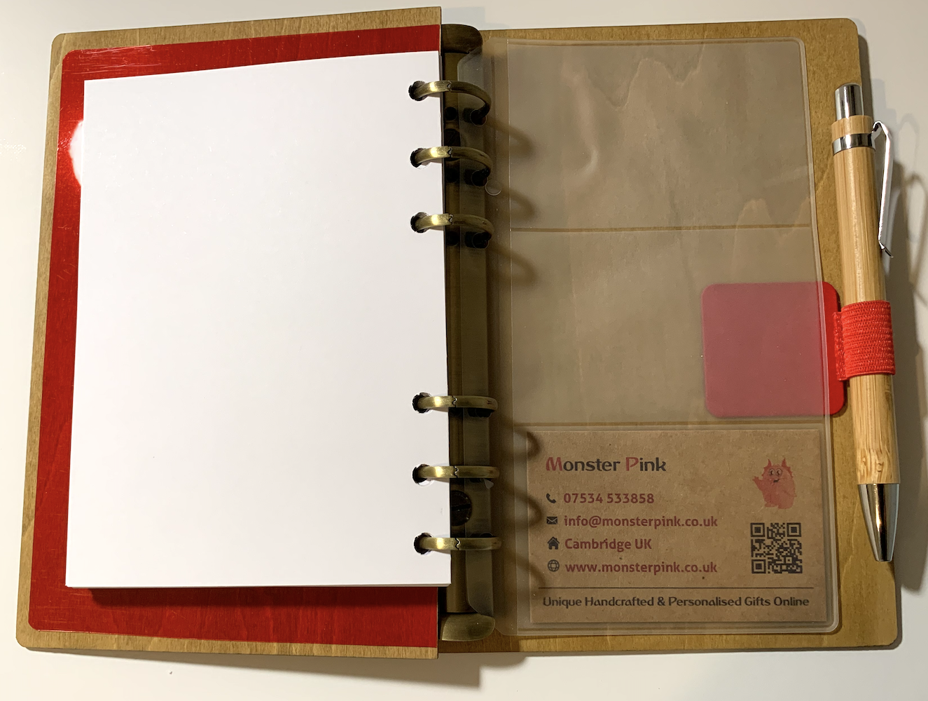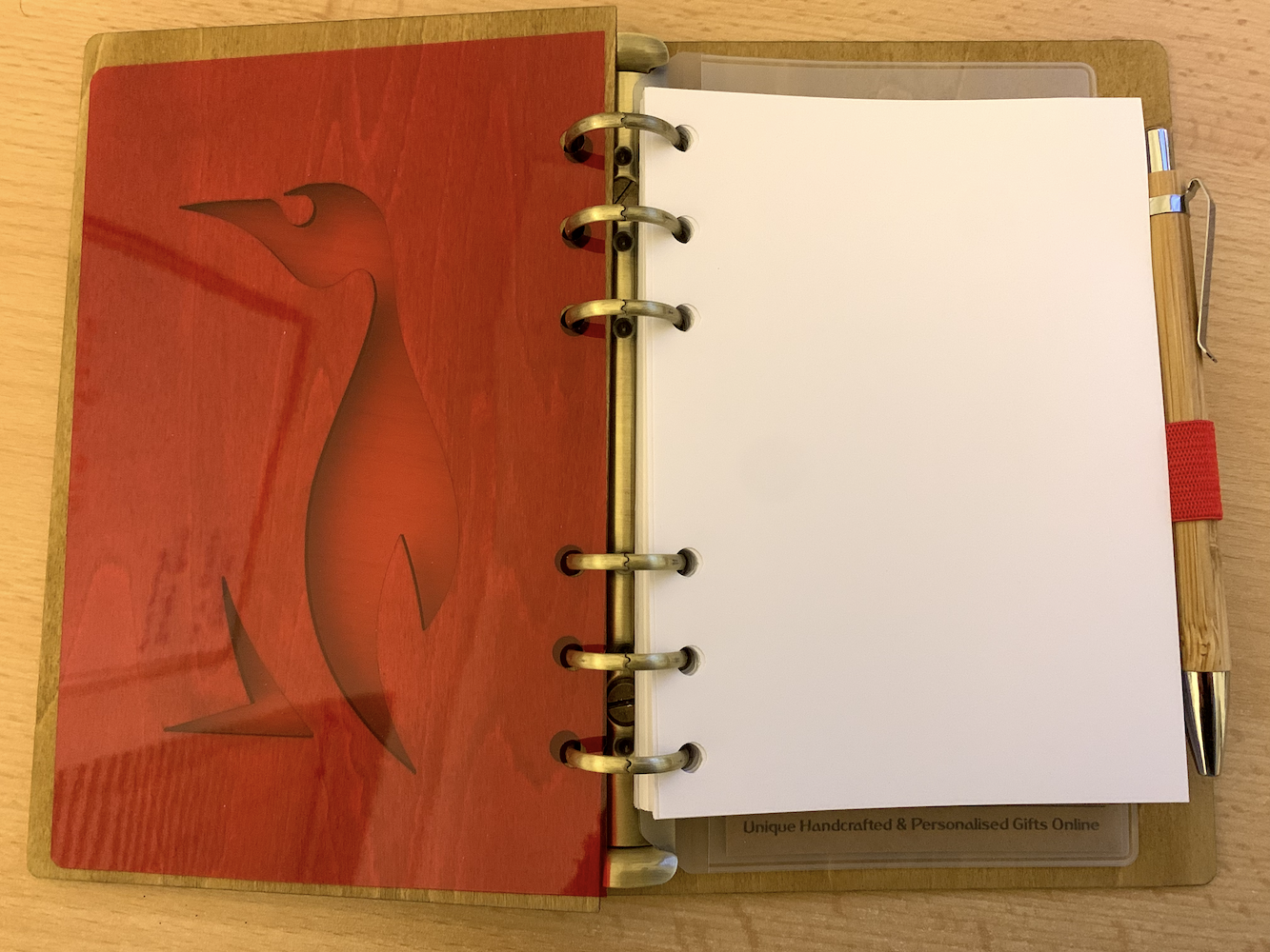 Inside Cover has Red Coloured Acetate and comes with a Bamboo pen