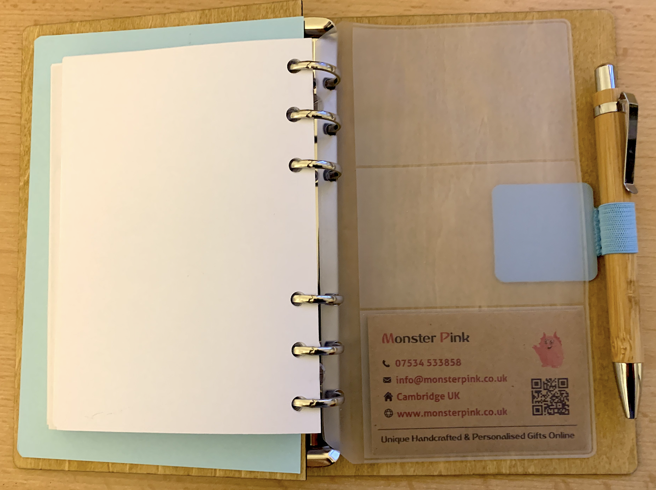 Inside Cover is Pale Blue Card and comes with a Bamboo pen
